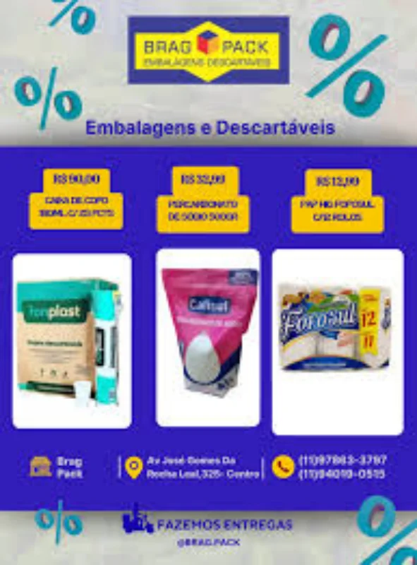 Faça sua compra na Brag Pack Embalagens Descartáveis e tenha a certeza de estar adquirindo produtos de excelência para o seu negócio!